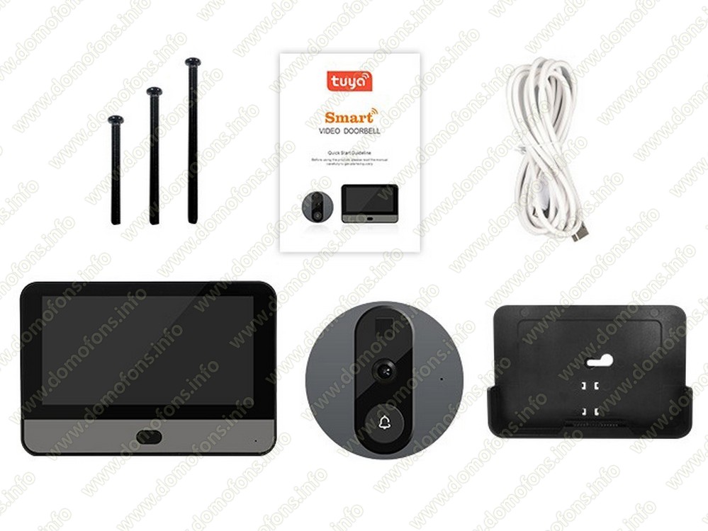 Дверной  Wi-Fi видеоглазок «HDcom DW1-Tuya» — это беспроводной дверной видеоглазок, который совмещает в себе функции видеоглазка и видеодомофона. Видеоглазок состоит из монитора и видеокамеры, которая расположена с внешней стороны двери. Встроенный аккумулятор: 4500 мА·ч